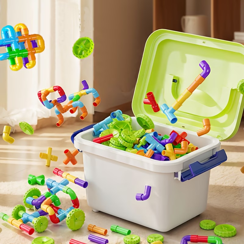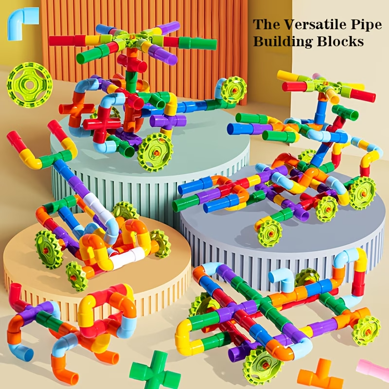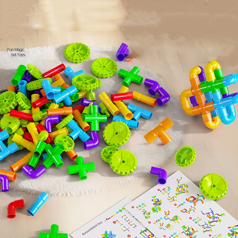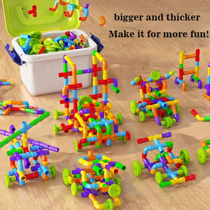 138pcs Building Block Pipe Toy, Tubular Colorful Pipe Blocks
