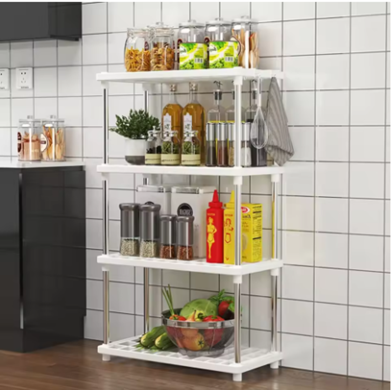 Crafted from plastic, this storage rack is eco-friendly, ensuring a sustainable choice for your kitchen and bathroom.