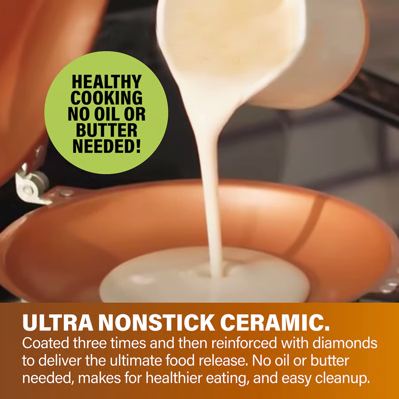 Quick double-sided frying pan makes it easier to make delicious pancakes.